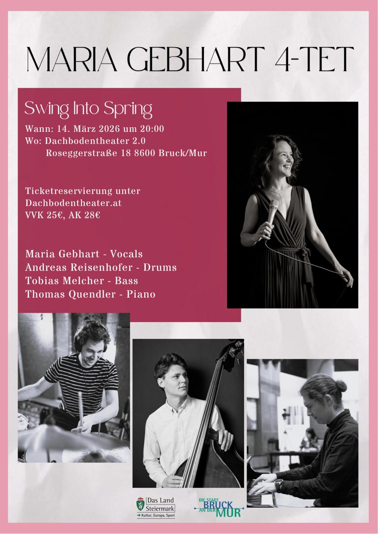 Unter dem Motto „Swing into Spring“ lädt das Maria Gebhart Quartett zu einem beschwingten Jazzabend und stimmt musikalisch auf den Frühling ein.